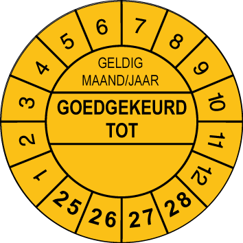 Keuringssticker Ø30mm “Goedgekeurd tot”(Geel)