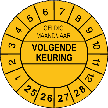 Keuringssticker Ø30mm “Volgende Keuring”(Geel)
