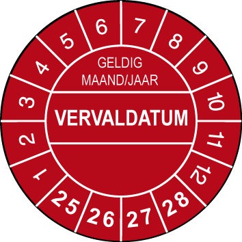 Keuringssticker Ø30mm “Vervaldatum”(Rood)