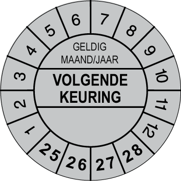 Keuringssticker Ø30mm “Volgende Keuring”(Grijs)