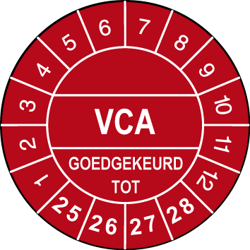 Keuringssticker Ø30mm “VCA”(Rood)