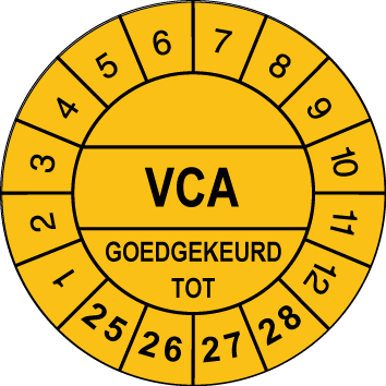 Keuringssticker Ø30mm “VCA”(Geel)